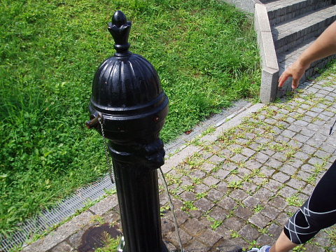 その脇にある水飲み場でボトルに水を補給する。それはライオンの顔が蛇口なっており、口から水が出ます。