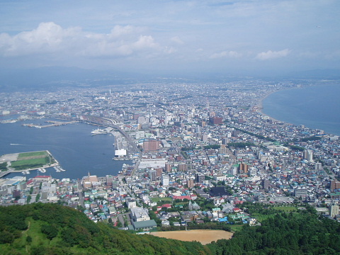山頂から見た函館市街はちょっと霞がかっていたた。ちょっと残念ですが、ここから眺める風景はきれいです。